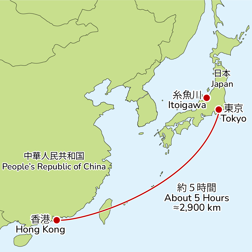 中国広東省の南東の沿海地帯に位置する香港。面積は約1100km2。 人口は約700万人で、糸魚川市の人口(約45,000人)のおよそ155倍。 林立する高層ビルと世界3大夜景の一つに数えられる「100万ドルの夜景」は、誰もが思い浮かべる香港のイメージではないでしょうか。